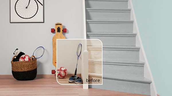Lieliski piemērota koka, betona vai lamināta grīdu, kāpņu un grīdlīstu atsvaidzināšanai – pat mitrās vietās, piemēram, balkonos. Uz ūdens bāzes veidotā formula ir ļoti izturīga pret skrāpējumiem un ikdienas nodilumu, nodrošinot ilgnoturīgu rezultātu.